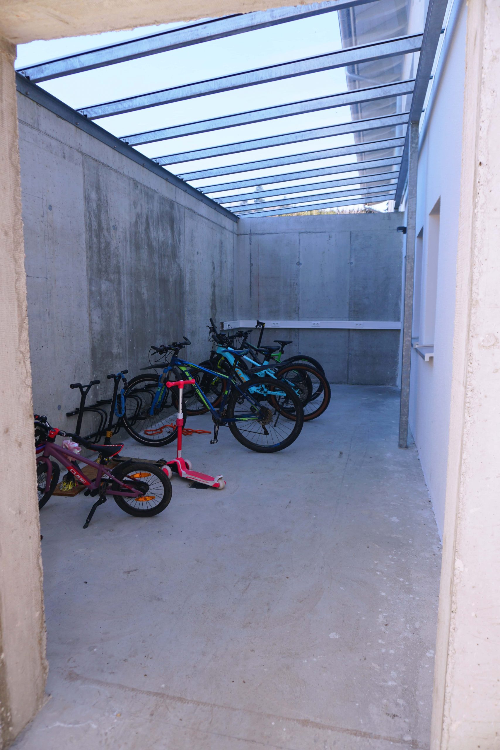 Im überdachten Fahrradkeller befindet sich eine kostenlose e-bike-Ladestelle, im Waschraum können gegen einen Unkostenbeitrag Waschmaschine und Trockner benutzt werden. Auch ein Bügeleisen und ein Bügelbrett stehen dort zum Ausleihen bereit.